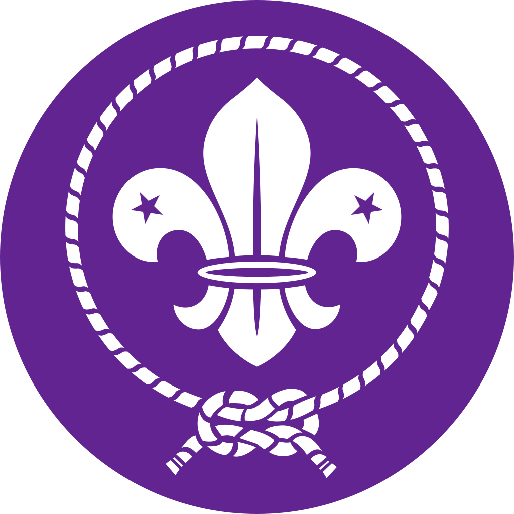 “Be Prepared” is clearly shown on a scroll below a fleur-de-lis in many scout badges.